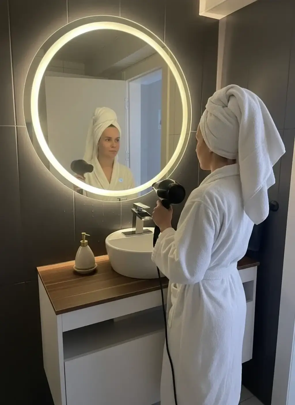 %100 MDF Banyo Mobilyası | Seramik Lavabo + Dokunmatik Ledli Ayna