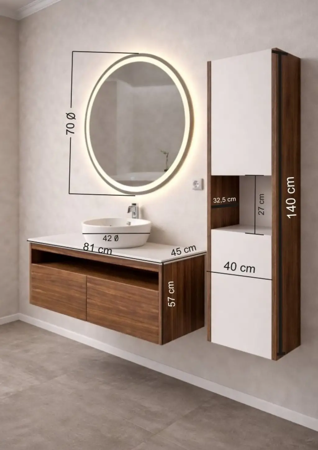 100cm Aurora Banyo Mobilyası Full Set - Viktorya ceviz